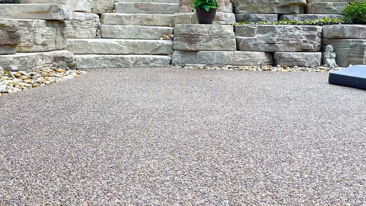 Exposed aggregate concrete is an attractive alternative to traditional concrete at a cost effective price point. As the concrete sets up we apply a solution that allows us to remove the top layer of cement to expose the stones in the mix. The result is a textured finish with a subtle color variation in the stones. We are able to achieve different colors in the concrete through additives and sealers.