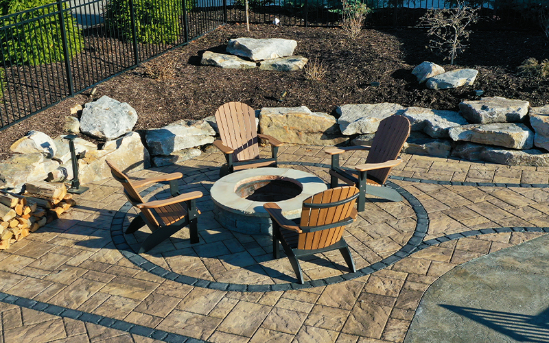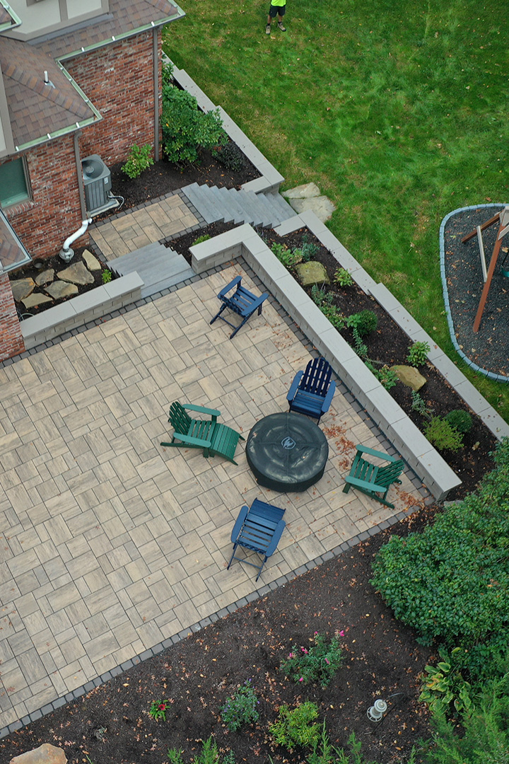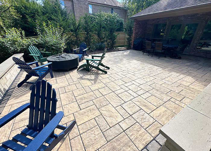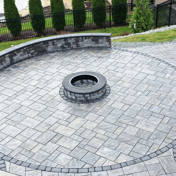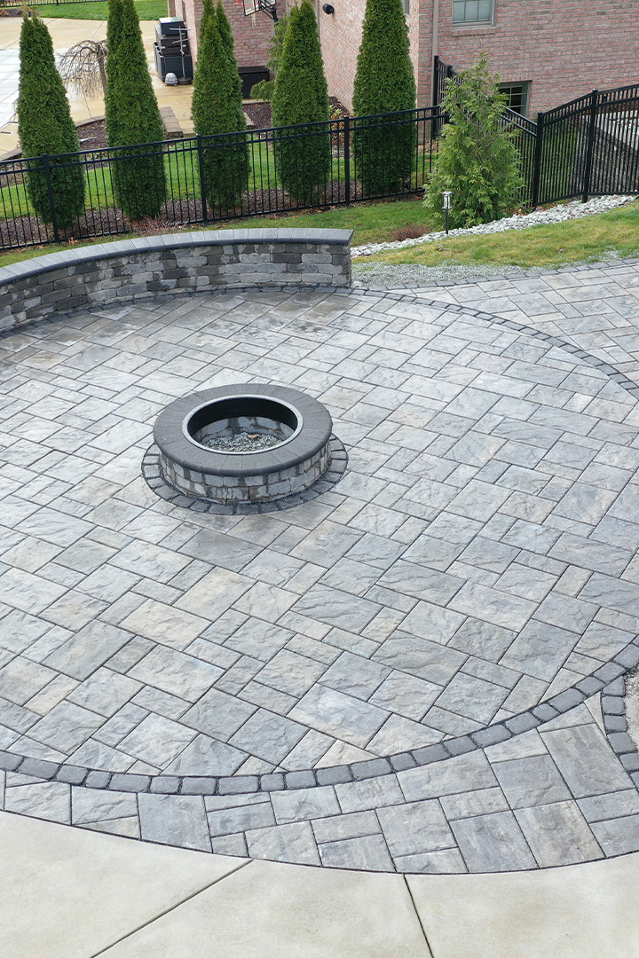 Custom patio installation in Pittsburgh, PA using pavers, flagstone, and exposed aggregate concrete. From intimate seating areas to expansive outdoor living spaces with fire pits and kitchens.