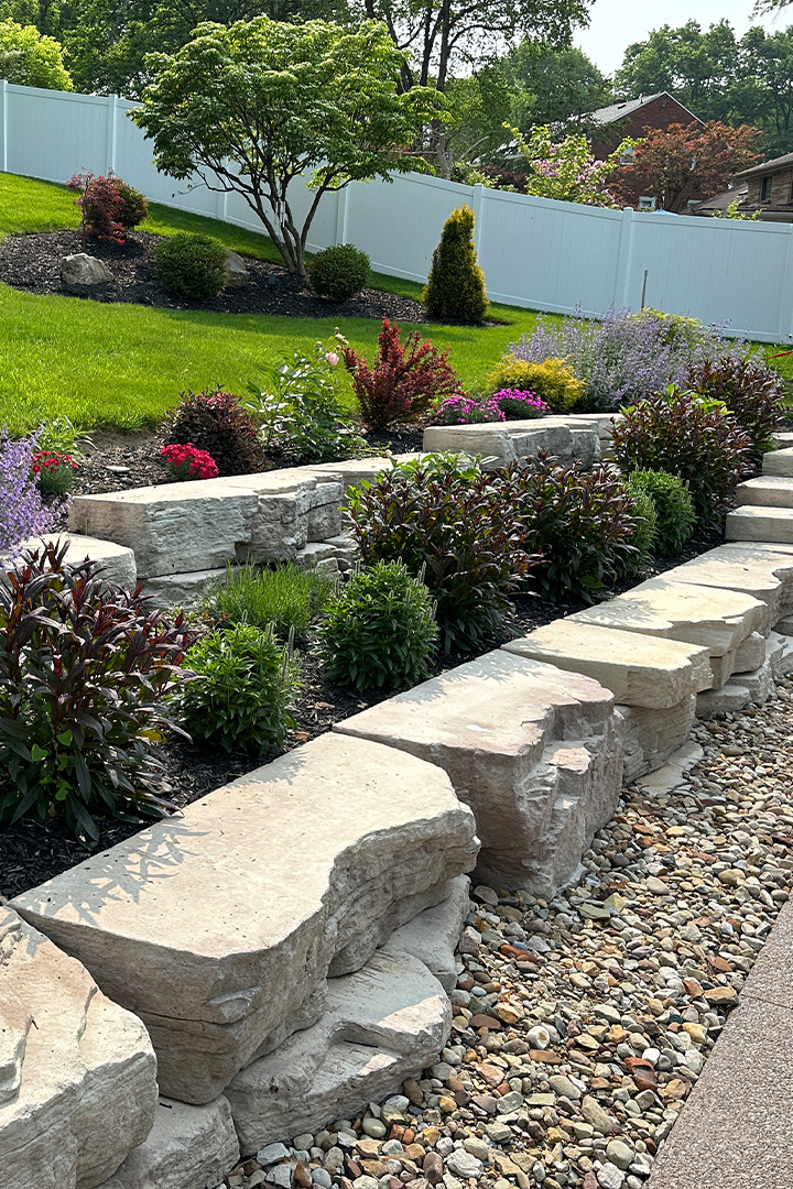From Versa-Lok block walls to natural stone and boulder retaining wall installation in Pittsburgh, PA, we build structures engineered to last. Every wall includes proper drainage, compacted base, and Geogrid reinforcement — backed by our 10-year warranty.