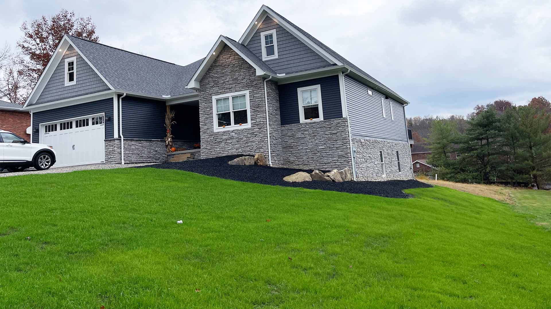Whether you need an entire new lawn for your new construction home, or just part of your lawn repaired after a recent project, we can get your yard to come in full and green. Our lawn improvement projects involve bringing in quality topsoil and spreading a premium seed mixture of Kentucky Blue Grass and Tall Fescue. New seed is covered with mushroom manure or straw depending on the application.