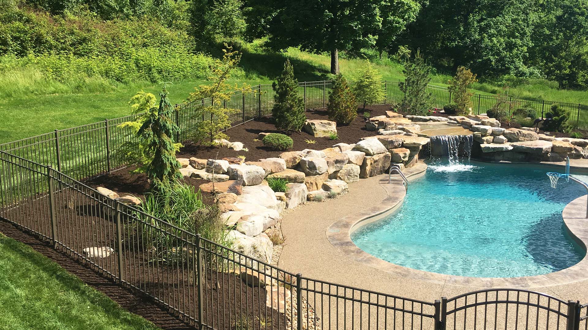 Rubber mulch is an alternative to traditional mulch, and a common choice around play areas or swing sets.