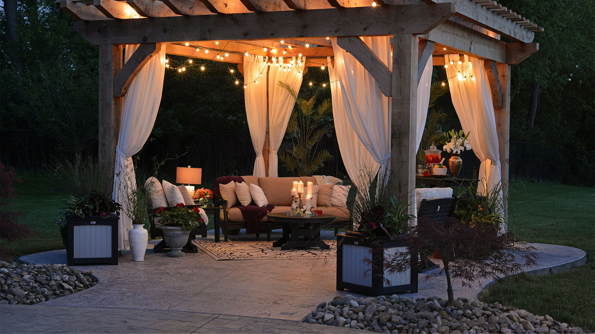 This question ties into the first. If you’re eating outside do you need space for a 4 person table or an 8 person table? Will you need bar seating around a kitchen area? Do you plan to have a couple of chair or do we need room for a sectional?